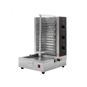 Грили для шаурмы – это особый вид шампурных грилей, предназначенный специально для приготовления этого восточного блюда. Особенность приготовления мяса для шаурмы предопределяет строение аппарата для шаурмы. Мясная вырезка надевается на специальный вертикальный нож, медленно вращающийся вокруг своей оси рядом с нагревательными элементами, гарантируя тем самым равномерную обжарку крайнего слоя мяса, который снимается по мере приготовления.